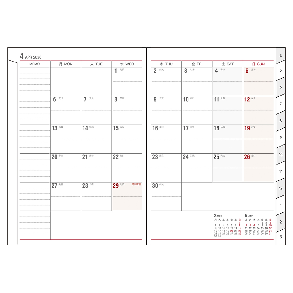 予定もメモもたくさん書ける。便利な見出し付き。