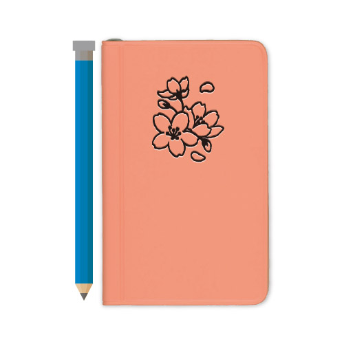 訪日外国人に人気の鉛筆付き手帳を、漢字や日本らしいイラストを表紙に箔押ししたデザインでご用意しました。
