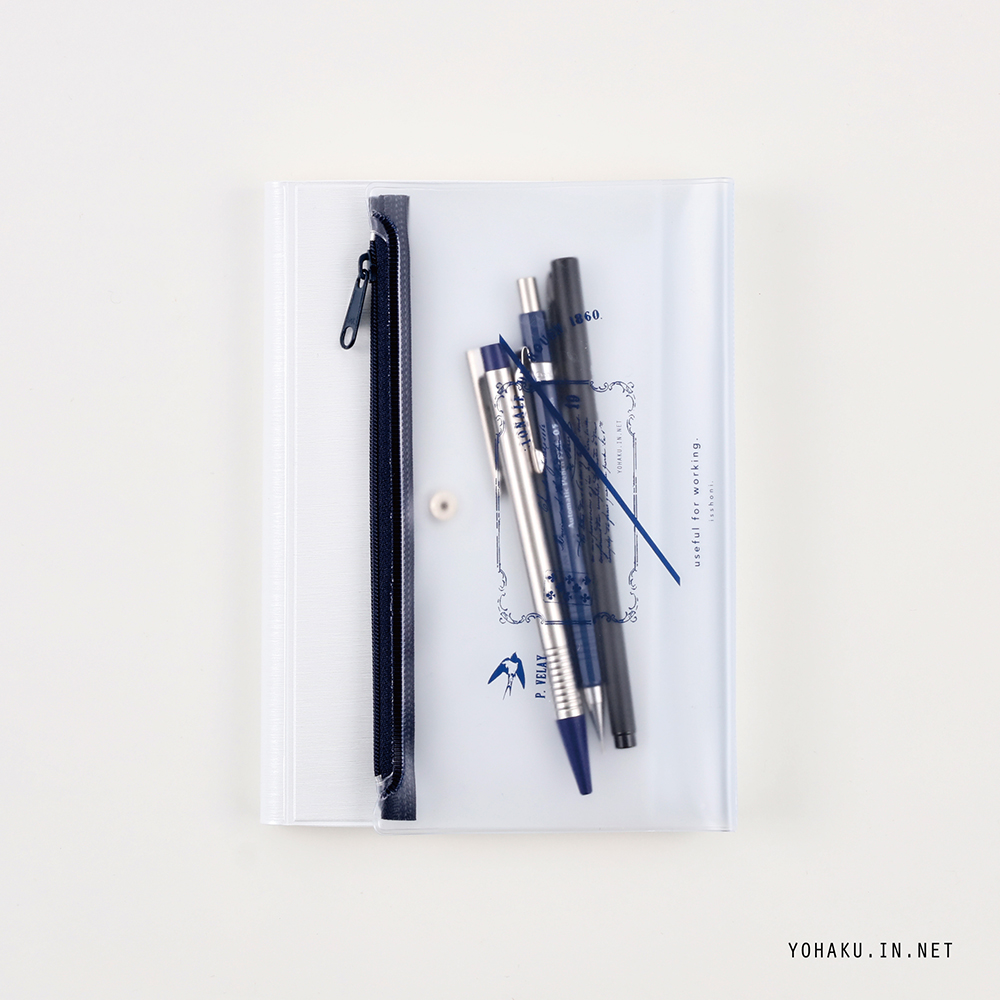 ・ノートや手帳、文具などをひとまとめにして持ち運ぶことができます。 ・ノートや手帳を内面の袖ポケットに差し込んで使用します。 ・前面ポケットに書類やポストカードなどを入れられます。 ※A6サイズはペンによってファスナーケースに入らない場合がございます。