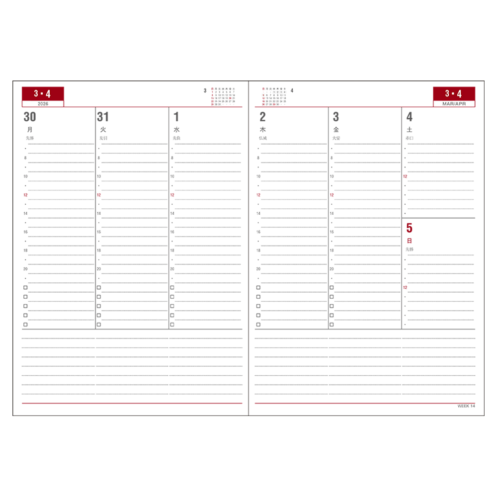時間を細かく区切って管理がしやすいのが特徴で、仕事で時間刻みのアポイントが入る営業職の方などにおすすめです。